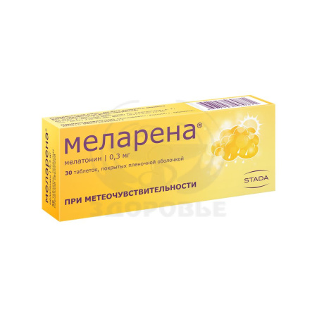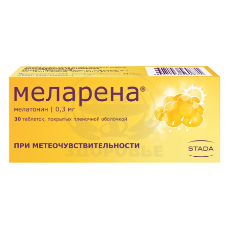 Меларена® содержит аналог мелатонина и способствует облегчению состояния метеочувствительных людей. Меларена® оказывает адаптогенное действие, в результате чего организм лучше справляется с переменами погоды. Препарат помогает организму метеочувствительных людей адаптироваться к изменениям погодных условий.