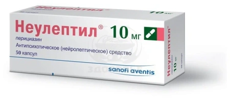 Состав Перициазин 10 мг Вспомогательные вещества: кальция гидрофосфата дигидрат - 137 мг, магния стеарат - 3 мг. Состав капсулы: титана диоксид (Е171) - 3%, желатин - qsp 100% (номинальная масса капсулы - 150 мг). Фармакологическое действие Неулептил - нейролептик из пиперидиновых производных фенотиазина. Оказывает умеренный антипсихотический и седативный эффект без стимулирующего компонента. Обладает адренолитическим, спазмолитическим, парасимпатолитическим, противорвотным, гипотермическим действием. Потенцирует активность наркотикотических и ненаркотических анальгетиков, снотворных средств. Оказывает отчетливый седативный эффект, уменьшает агрессивность, возбудимость, расторможенность. Обладает снотворным действием. В связи с избирательным нормализующим влиянием на поведение Неулептил получил название "корректор поведения". Способ применения и дозы Режим дозирования значительно варьирует в зависимости от показаний и возраста пациента. Средняя суточная доза должна даваться в 2 или 3 приема с акцентом на вечерние часы. У взрослых средняя суточная доза может колебаться от 30 мг до 100 мг. В отдельных случаях допустимо увеличение суточной дозы до 200 мг. Меры предосторожности В период лечения возможно обострение псориаза. При феохромоцитоме пропранолол можно применять только после приема альфа-адреноблокатора. После продолжительного курса лечения пропранолол следует отменять постепенно, под наблюдением врача. На фоне лечения пропранололом следует избегать в/в введения верапамила , дилтиазема . За несколько дней перед проведением наркоза необходимо прекратить прием пропранолола или подобрать средство для наркоза с минимальным отрицательным инотропным действием. Влияние на способность к вождению автотранспорта и управлению механизмами У пациентов, деятельность которых требует повышенного внимания, вопрос о применении пропранолола амбулаторно следует решать только после оценки индивидуальной реакции пациента. Побочное действие Неулептил обычно хорошо переносится, однако, в отдельных случаях могут наблюдаться следующие нежелательные реакции, выраженность которых варьирует в зависимости от фармакологических свойств нейролептика. Малые начальные дозы: Нарушения со стороны вегетативной нервной системы: ортостатическая гипотония . антихолинергические эффекты, такие как сухость во рту, запор, парез аккомодации, задержка мочи. Нарушения со стороны нервной системы: седативное действие или сонливость, которые более выражены в начале лечения . апатия, тревожное состояние, изменения настроения, состояние подавленности. Более высокие дозы: Нарушения со стороны нервной системы: ранние дискинезии (спастическая кривошея, окуломоторные кризы, тризм и.т.п.), поздняя дискинезия, наблюдаемая при длительном лечении . экстрапирамидные расстройства (акинезия, иногда сочетающаяся с мышечным гипертонусом и частично устраняемая при назначении антихолинергических антипаркинсонических средств . гиперкинезия-гипертонус, моторное возбуждение . акатизия). Эндокринные и метаболические нарушения: импотенция, фригидность . гиперпролактинемия: аменорея, галакторея, гинекомастия . увеличение массы тела . нарушения терморегуляции . гипергликемия, снижение толерантности к глюкозе. Реже возникающие и не зависящие от дозы реакции: Кожные ре