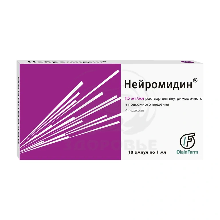 Ингибитор холинэстеразы. Оказывает непосредственное стимулирующее влияние на проведение импульса по нервным волокнам, межнейрональным и нервно-мышечным синапсам периферической и центральной нервной системы. Фармакологическое действие препарата Нейромидин основано на сочетании двух механизмов действия: блокады калиевых каналов мембраны нейронов и мышечных клеток; обратимого ингибирования холинэстеразы в синапсах.Нейромидин усиливает действие на гладкие мышцы не только ацетилхолина, но и адреналина, серотонина, гистамина и окситоцина.Нейромидин обладает следующими фармакологическими эффектами: улучшает и стимулирует проведение импульса в нервной системе и нервно-мышечную передачу; усиливает сократимость гладкомышечных органов под влиянием агонистов ацетилхолиновых, адреналиновых, серотониновых, гистаминовых и окситоциновых рецепторов, за исключением калия хлорида; улучшает память, тормозит прогредиентное развитие деменции.