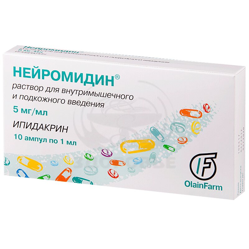 Ингибитор холинэстеразы. Оказывает непосредственное стимулирующее влияние на проведение импульса по нервным волокнам, межнейрональным и нервно-мышечным синапсам периферической и центральной нервной системы. Фармакологическое действие препарата Нейромидин основано на сочетании двух механизмов действия: блокады калиевых каналов мембраны нейронов и мышечных клеток; обратимого ингибирования холинэстеразы в синапсах.Нейромидин усиливает действие на гладкие мышцы не только ацетилхолина, но и адреналина, серотонина, гистамина и окситоцина.Нейромидин обладает следующими фармакологическими эффектами: улучшает и стимулирует проведение импульса в нервной системе и нервно-мышечную передачу; усиливает сократимость гладкомышечных органов под влиянием агонистов ацетилхолиновых, адреналиновых, серотониновых, гистаминовых и окситоциновых рецепторов, за исключением калия хлорида; улучшает память, тормозит прогредиентное развитие деменции.