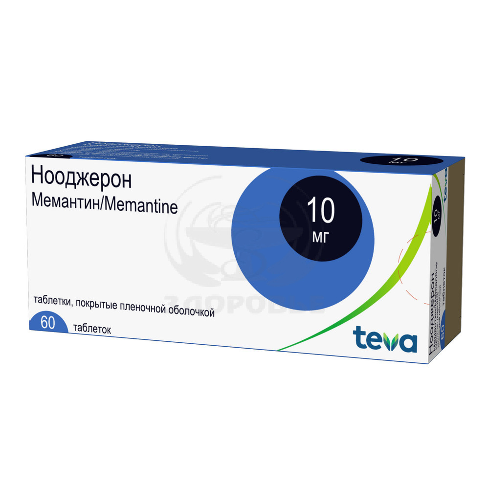 Таблетки, покрытые пленочной оболочкой, состав (1 табл.): активное вещество: мемантина гидрохлорид — 10 мг; (эквивалентно 8,31 мг мемантина); вспомогательные вещества: МКЦ — 136,8 мг; кальция гидрофосфат — 84,5 мг; кроскармеллоза натрия — 4,8 мг; кремния диоксид коллоидный — 1,5 мг; магния стеарат — 2,4 мг; оболочка пленочная: Opadry II серый 45F27505 (гипромеллоза 2910/15 cP — 2,5 мг, полидекстроза — 2,5 мг, титана диоксид — 2,48 мг, макрогол/макрогол 4000 — 0,5 мг, краситель железа оксид черный — 0,02 мг) — 8 мг