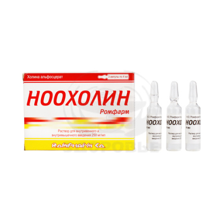 1 мл препарата содержит: холина альфосцерат полигидрат в пересчете на холина альфосцерат ангидрид – 250 мг;.
