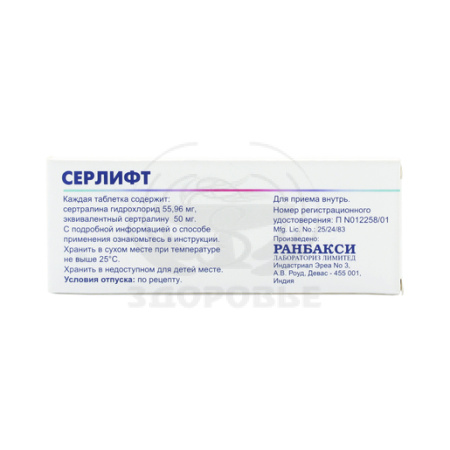 1 таблетка содержит:Активное вещество: сертралин 50 мг.