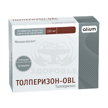 Толперизона гидрохлорид, дополнительные компоненты – лимонная кислота, моногидрат лактозы (молочный сахар), гипролоза, кросповидон, стеариновая кислота. Оболочка таблеток Толперизон-OBL состоит из опадрая II (серия 85), талька, диоксида титана.