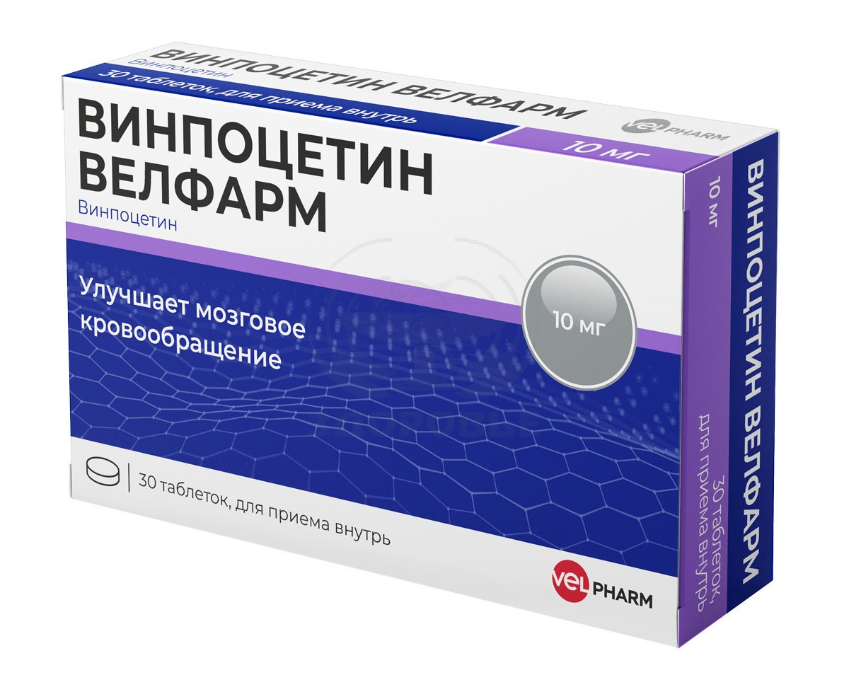 ВсасываниеПосле приема внутрь быстро всасывается из желудочно-кишечного тракта. Время достижения максимальной концентрации (ТСmах) в плазме крови 1 ч. Всасывание происходит главным образом в проксимальных отделах желудочно-кишечного тракта. При прохождении через стенку кишечника не подвергается метаболизму.РаспределениеПри пероральном введении радиоактивно меченого винпоцетина крысам наибольшая радиоактивность обнаруживалась в печени и желудочно-кишечном тракте. Максимальная концентрация в тканях отмечалась через 2-4 ч после введения. Концентрация в головном мозге не превышала значений обнаруженных в крови.У человека связь с белками плазмы составляет 66%. Биодоступность - около 7%. Объем распределения - 2467±885 л. что свидетельствует о высоком связывании с тканями. Общий клиренс (667 л/ч) превышает скорость печеночного кровотока (50 л/ч) что указывает на внепеченочный метаболизм.МетаболизмОсновным метаболитом является аповинкаминовая кислота (АВК) составляющая 25-30 % от исходного соединения. Площадь под кривой "концентрация-время" АВК после приема внутрь вдвое превышает таковую при внутривенном введении винпоцетина. Таким образом винпоцетин подвержен выраженному эффекту "первого прохождения" через печень.К прочим метаболитам относятся: гидроксивинпоцетин гидрокси-АВК АВК-диоксиглицинат и их конъюгаты (сульфаты и (или) глюкурониды). Выведение неизмененного винпоцетина низкое.При нарушении функции печени или почек коррекция дозы не требуется поскольку винпоцетин не кумулирует в организме.ВыведениеПри многократном введении в дозе 5 и 10 мг винпоцетин проявляет линейную фармакокинетику равновесная плазменная концентрация составляет 12±027 и 21 ±033 нг/мл соответственно.Период полувыведения у человека составляет 483±129 ч. В исследованиях с радиоактивно меченым винпоцетином установлено что выведение почками и кишечником происходит в соотношении 60:40%. Выведение аповинкаминовой кислоты осуществляется путем гломерулярной фильтрации.У крыс и собак высокая концентрация обнаруживается в желчи однако отмечена значительная энтерогепатическая рециркуляция.Фармакокинетика у особых групп пациентовПоскольку винпоцетин предназначен в первую очередь для лечения пожилых необходимо учитывать замедление распределения и метаболизма а также выведения у этой возрастной группы особенно при длительном применении.По результатам клинических исследований установлено что фармакокинетика винпоцетина у пожилых существенно не отличается от молодых кумуляции не происходит.При нарушениях функции печени и почек кумуляция не отмечается что позволяет проводить длительную терапию.