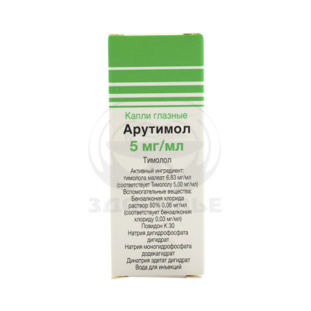 Совместное использование Арутимола с глазными каплями, содержащими эпинефрин, может вызвать расширение зрачка.Специфическое действие препарата - снижение внутриглазного давления усиливается при одновременном использовании глазных капель, содержащих эпинефрин и пилокарпин; закапывать в глаза два бета-адреноблокатора не следует.Снижение АД и замедление сердечного ритма могут потенцироваться при совместном применении Арутимола с блокаторами кальциевых каналов, резерпином и бета-адреноблокаторами.Одновременное применение с инсулином или пероральными гипогликемическими средствами может привести к гипогликемии.Тимолол усиливает действие миорелаксантов, поэтому необходима отмена препарата за 48 ч до планируемого хирургического вмешательства с применением общей анестезии.Эти данные могут относиться и к лекарственным препаратам, которые были применены незадолго до этого.