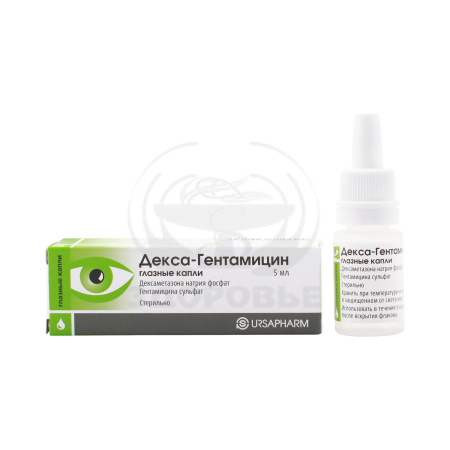 Комбинированный препарат для местного применения в офтальмологии. Оказывает противоаллергическое, противовоспалительное и антибактериальное действие.Дексаметазон – ГКС, оказывает противоаллергическое и выраженное противовоспалительное действие. Индекс его относительной противовоспалительной активности составляет 30.Гентамицин – антибиотик группы аминогликозидов, характеризуется широким спектром действия. Активен в отношении большинства грамположительных и грамотрицательных микроорганизмов, в т.ч. Pseudomonas aeruginosa, Escherichia coli, Klebsiella spp., Salmonella spp., Proteus spp., Serratia spp. Умеренно активен в отношении Staphylococcus spp.