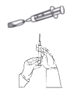 • Вскройте шприц, присоедините к нему иглу размером 1,2 мм × 50 мм для забора растворителя.