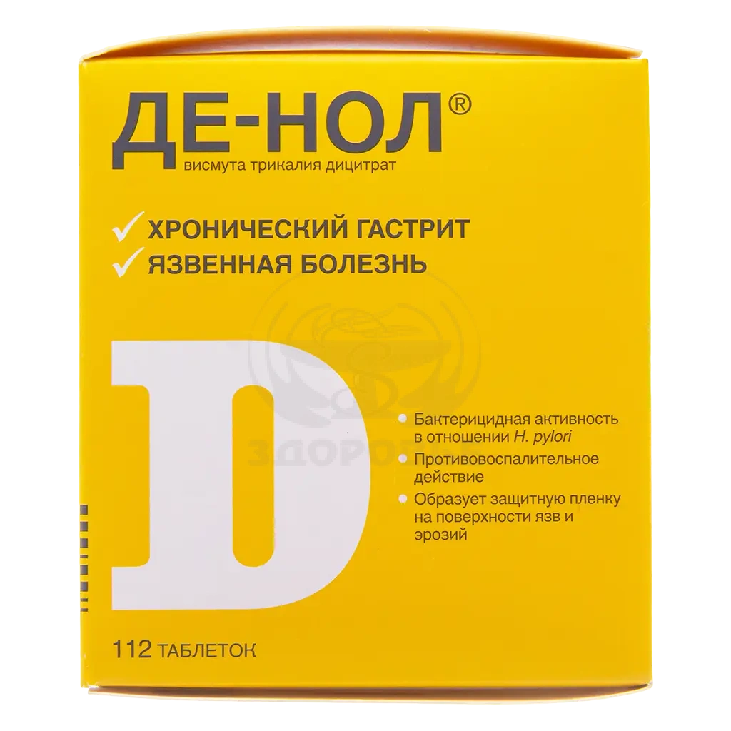 В течение получаса до и после приема Де-Нола® не рекомендуется применение внутрь других ЛС, а также прием пищи и жидкости, в частности антацидов, молока, фруктов и фруктовых соков. Это связано с тем, что они при одновременном приеме внутрь могут оказывать влияние на эффективность Де-Нола®.