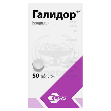 При одновременном применении Галидор усиливает угнетающее влияние на ЦНС средств для наркоза и седативных препаратов.При одновременном применении Галидора с симпатомиметиками повышается риск развития тахикардии, предсердных и желудочковых тахиаритмий.При одновременном применении Галидора и препаратов, снижающих уровень калия в крови (в т.ч. диуретики, сердечные гликозиды), и хинидином возможна суммация проаритмогенных эффектов.При одновременном применении Галидора с препаратами наперстянки повышается риск аритмии при передозировке сердечных гликозидов.При одновременном применении Галидора с бета-адреноблокаторами может возникнуть необходимость подбора дозы бета-адреноблокатора из-за противоположности хронотропных эффектов (отрицательный у бета-адреноблокаторов и положительный у бенциклана).При одновременном применении Галидора с блокаторами кальциевых каналов и другими антигипертензивными препаратами возможно усиление их эффекта.При одновременном применении Галидора с лекарственными средствами, вызывающими побочные эффекты в виде спазмофилии, возможна суммация этих эффектов.При одновременном применении Галидора с ацетилсалициловой кислотой возможно усиление торможения агрегации тромбоцитов.