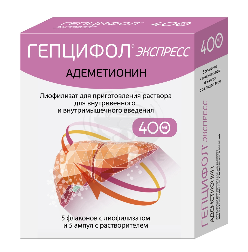 Гепцифол экспресс лиофилизат для приготовления раствора для в/в и в/м введения 400мг флаконы 760мг 5 + растворитель