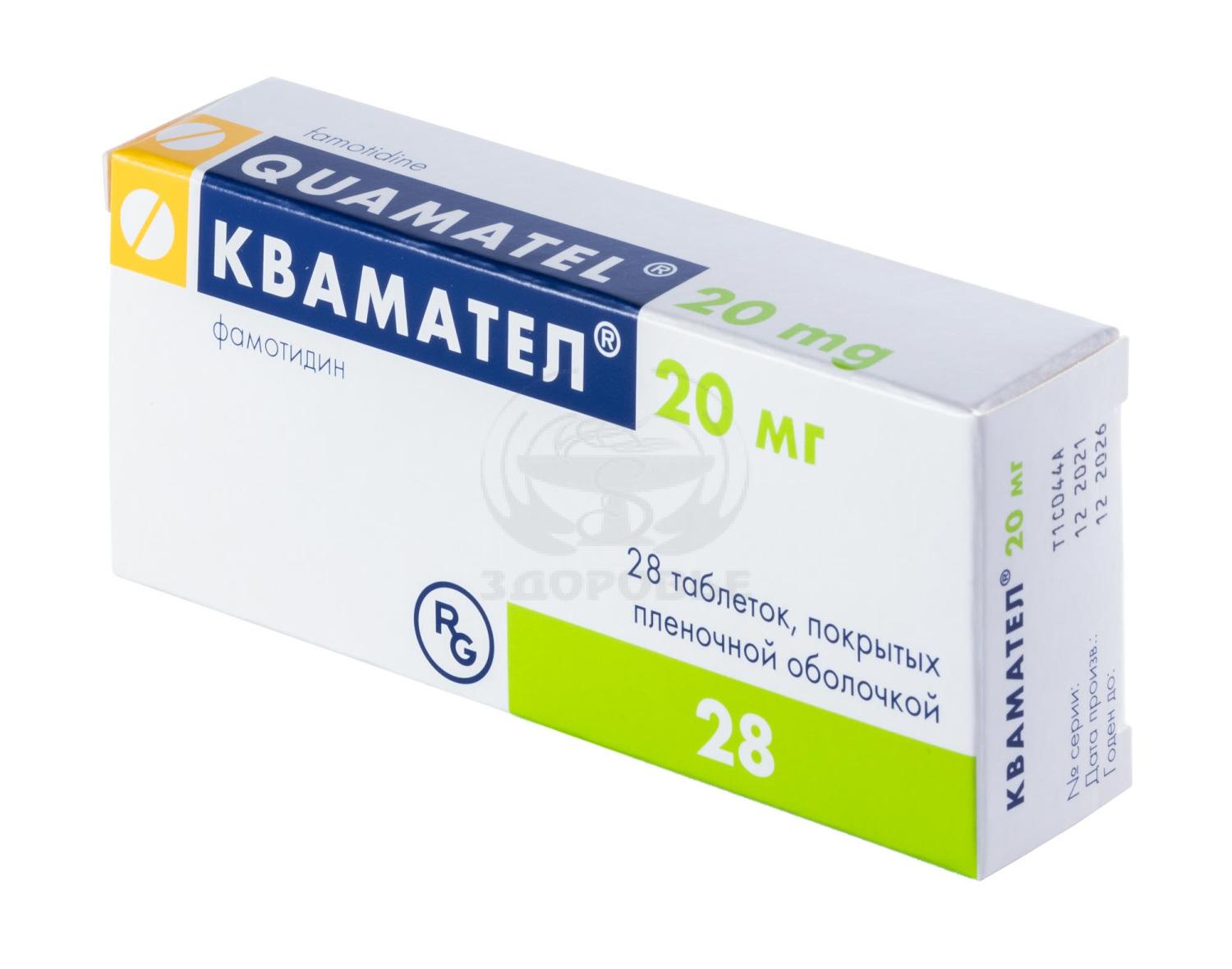 Квамател - блокатор гистаминовых H2-рецепторов. Снижает базальную и стимулированную гастрином, пентагастрином, бетазолом,кофеином, гистамином, ацетилхолином и физиологическим вагусным рефлексом секрецию соляной кислоты. При этом возрастает рН и снижается активность пепсина. Практически не влияет на уровни гастрина натощак и после приема пищи. Не влияет на моторику желудка, экзокринную активность поджелудочной железы, кровообращение в портальной системе, на уровни гормонов, не оказывает антиандрогенного действия. Фамотидин слабо влияет на микросомальные ферменты печени. После приема препарата внутрь действие наступает через 1 ч, максимум действия - через 3 ч после приема, продолжительность эффекта колеблется в пределах 12-24 ч, в зависимости от дозы. Препарат в форме лиофилизата для приготовления раствора для в/в введения после введения в разовой дозе 20 или 40 мг вечером подавляет базальную и ночную секрецию в течение 10-12 ч.
