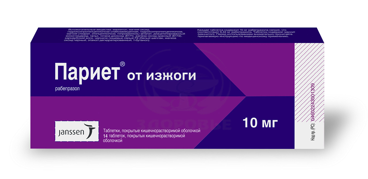 Таблетки препарата Париет нельзя разжевывать или измельчать. Таблетки следует глотать целиком. Установлено, что ни время суток, ни прием пищи не влияют на активность рабепразола натрия.В специальном исследовании у пациентов с легкими или умеренными нарушениями функции печени не было обнаружено значимого отличия частоты побочных эффектов препарата Париет от таковой у подобранных по полу и возрасту здоровых лиц, но, несмотря на это, рекомендуется соблюдать осторожность при первом назначении препарата Париет пациентам с тяжелыми нарушениями функции печени. AUC рабепразола натрия у пациентов с тяжелым нарушением функции печени примерно в два раза выше, чем у здоровых пациентов.Пациентам с нарушениями функции почек или печени корректировка дозы препарата Париет не требуется.ГипомагниемияПри лечении ингибиторами протонной помпы на протяжении по крайней мере 3 месяцев в редких случаях были отмечены случаи симптоматической или асимптоматической гипомагниемии. В большинстве случаев эти сообщения поступали через год после проведения терапии. Серьезными побочными явлениями были тетания, аритмия и судороги. Большинству пациентов требовалось лечение гипомагниемии, включающей замещение магния и отмены терапии ингибиторов протонной помпы. У пациентов, которые будут получать длительное лечение или которые принимают ингибиторы протонной помпы с препаратами, такими как дигоксин или препаратами, которые могут вызвать гипомагниемию (например диуретики), медицинские работники должны контролировать уровень магния до начала лечения ингибиторами протонной помпы и в период лечения.Пациенты не должны принимать одновременно с препаратом Париет другие средства, снижающие кислотность, например блокаторы Н2-рецепторов или ингибиторы протонного насоса.Переломы костейСогласно данным наблюдательных исследований можно предположить, что терапия ингибиторами протонной помпы (ИПП) может привести к возрастанию риска связанных с остеопорозом переломов бедра, запястья или позвоночника. Риск переломов был увеличен у пациентов, получавших высокие дозы ИПП длительно (год и более).Одновременное применение рабепразола с метотрексатомСогласно литературным данным, одновременный прием ИПП с метотрексатом (прежде всего в высоких дозах), может привести к повышению концентрации метотрексата и/или его метаболита гидроксиметотрексата и увеличитьT1/2, что может привести к проявлению токсичности метотрексата. При необходимости применения высоких доз метотрексата может быть рассмотрена возможность временного прекращения терапии ИПП.Clostridium difficileТерапия ИПП может приводить к возрастанию риска желудочно-кишечных инфекций, таких как Clostridium difficile.Пациентам, принимающим препарат Париет для кратковременного симптоматического лечения проявлений ГЭРБ и НЭРБ (например, изжоги) без рецепта, следует обратиться к врачу в следующих случаях:- применение средств для снятия симптомов изжоги и нарушения пищеварения в течение 4 недель и более;- появление новых симптомов или изменение ранее наблюдавшихся симптомов у пациентов в возрасте более 55 лет;- случаи ненамеренного уменьшения массы тела, анемии, кровотечений в желудочно-кишечном тракте, дисфагии, боли при глотании, постоянной рвоты или рвоты с кровью и содержимым эпигастрия, случаи язвы желудка или о