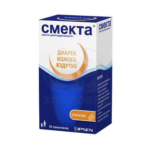 Противодиарейный препарат, представляет собой алюмосиликат природного происхождения. Оказывает адсорбирующее действие. Стабилизирует слизистый барьер ЖКТ, образует поливалентные связи с гликопротеидами слизи, увеличивает количество слизи и улучшает ее цитопротекторные свойства (в отношении отрицательного действия ионов водорода соляной кислоты, желчных солей, микроорганизмов и их токсинов). Обладает селективными сорбционными свойствами, которые объясняются его дискоидно-кристаллической структурой, адсорбирует находящиеся в просвете ЖКТ бактерии, вирусы. Смекта; в терапевтических дозах не влияет на моторику кишечника. Диосмектит является рентгенопрозрачным и не окрашивает стул. Алюминий в составе диосмектита не всасывается из ЖКТ, в т.ч. при заболеваниях ЖКТ, сопровождающихся симптоматикой колита и колонопатии.