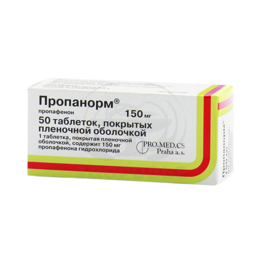 Всасывание;После приема препарата внутрь абсорбируется более 95% пропафенона. Биодоступность препарата повышается нелинейно с увеличением дозы (с 5% до 12% при повышении разовой дозы со 150 мг до 300 мг, а при приеме в дозе 450 мг - до 40-50%). C max достигается через 1-3.5 ч и составляет 500-1500 мкг/л.; ;Распределение;Связывание с белками плазмы крови и внутренних органов составляет 85-97%.; Проницаемость через ГЭБ и плацентарный барьер низкая. V d - 3-4 л/кг.; ;Метаболизм;Пропафенон почти полностью метаболизируется. Описаны 11 метаболитов препарата, фармакологически активными являются 5-гидроксипропафенон и N-депропилпропафенон, обладающие сопоставимой с пропафеноном антиаритмической активностью. Окислительный метаболизм зависит от специфического цитохрома, активность которого генетически детерминирована.; Терапевтический диапазон концентрации пропафенона в плазме крови составляет 0.5-2 мг/л.; ;Выведение;T 1/2 у пациентов с интенсивным метаболизмом составляет от 2 до 10 ч, у пациентов с замедленным метаболизмом - от 10 до 32 ч.; Выводится с мочой - 38% в виде метаболитов (< 1% в неизмененном виде), с желчью - 53% (в виде глюкуронидов и сульфатов).; ;Фармакокинетика в особых клинических случаях;При печеночной недостаточности выведение снижается.
