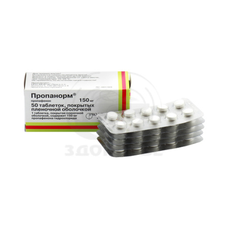Нельзя сочетать Пропанорм с лидокаином , т.к. усиливается кардиодепрессивный эффект.; При одновременном применении пропафенон повышает концентрацию пропранолола, метопролола, дигоксина (увеличивается риск развития гликозидной интоксикации), антикоагулянтов непрямого действия, циклоспорина в плазме крови.; При одновременном применении пропафенон усиливает действие варфарина (за счет блокирования метаболизма).; При одновременном применении с бета-адреноблокаторами, трициклическими антидепрессантамии возможно усиление антиаритмического действия.; При одновременном применении с местными анестетиками увеличивается риск поражения ЦНС.; Циметидин и хинидин , замедляя метаболизм, повышают концентрацию пропафенона в плазме на 20%, рифампицин - снижает.; При одновременном применении с пропафеноном амиодарон повышает риск развития тахикардии типа "пируэт".; Препараты, угнетающие синоатриальный узел и AV-узел и обладающие отрицательным инотропным действием, при одновременном применении с пропафеноном повышают риск развития побочных эффектов.; Препараты, угнетающие костномозговое кроветворение, при одновременном применении с пропафеноном увеличивают риск миелосупрессии.