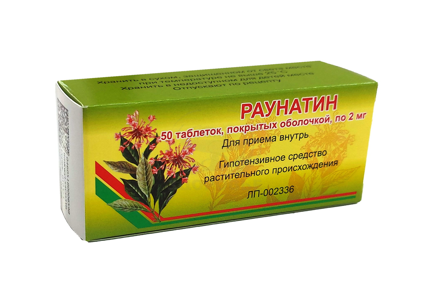 Раунатин (Раувольфии алкалоиды) в пересчете на 100 % содержание суммы алкалоидов–0,002 г