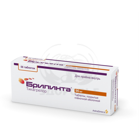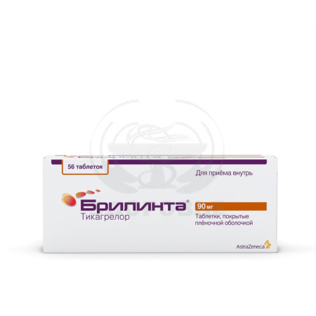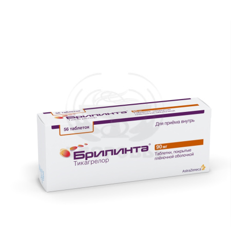 Препарат Брилинта® содержит в своем составе тикагрелор, представитель химического класса циклопентилтриазолопиримидинов, который является пероральным, селективным и обратимым антагонистом P2Y12 рецепторов прямого действия и предотвращает аденозиндифосфат-опосредованную P2Y12-зависимую активацию и агрегацию тромбоцитов. Тикагрелор не предотвращает связывание аденозиндифосфата (АДФ), но его взаимодействие с Р2Y12 рецептором тромбоцитов предотвращает АДФ- индуцированную трансдукцию сигналов. Так как тромбоциты участвуют в инициировании и/или развитии тромботических осложнений атеросклероза, было показано, что ингибирование функции тромбоцитов уменьшает риск развития сердечно- сосудистых явлений, таких как летальный исход, инфаркт миокарда или инсульт.
