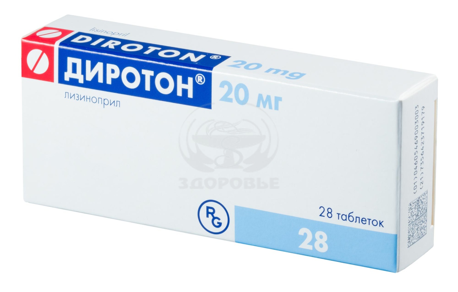 Чаще всего выраженное снижение АД возникает при снижении объема жидкости, вызванном терапией диуретиками, уменьшением содержания соли в пище, диализом, диареей или рвотой. При хронической сердечной недостаточности с одновременной почечной недостаточностью или без нее возможно выраженное снижение АД. Чаще выраженное снижение АД выявляется у больных с тяжелой стадией хронической сердечной недостаточности, как следствие применения диуретиков в высоких дозах, гипонатриемии или нарушенной функции почек. У таких больных лечение Диротоном надо начинать под строгим контролем врача (с осторожностью проводить подбор дозы препарата и диуретиков).Подобных правил следует придерживаться при назначении Диротона больным ИБС, цереброваскулярной недостаточностью, у которых резкое снижение АД может привести к инфаркту миокарда или инсульту.Транзиторная гипотензивная реакция не является противопоказанием для приема следующей дозы препарата.До начала лечения Диротоном, по возможности, следует нормализовать концентрацию натрия и/или восполнить потерянный объем жидкости, тщательно контролировать действие начальной дозы Диротона на АД пациента.Лечение симптоматической артериальной гипотензии состоит из обеспечения постельного режима и, в случае необходимости, в/в введения жидкости (инфузия физиологического раствора). Преходящая артериальная гипотензия не является противопоказанием для лечения препаратом Диротон, однако может потребоваться временная отмена его, либо снижение дозы.Лечение препаратом Диротон противопоказано в случае кардиогенного шока и при остром инфаркте миокарда, если назначение вазодилататора может существенно ухудшить показатели гемодинамики, например, когда систолическое АД не превышает 100 мм рт. ст.У больных с острым инфарктом миокарда снижение функции почек (концентрация креатинина в плазме крови более 177 мкмоль/л и/или протеинурия более 500 мг/24 ч) является противопоказанием для применения препарата Диротон. В случае развития почечной недостаточности в ходе лечения лизиноприлом (концентрация креатинина в плазме крови более 265 мкмоль/л либо вдвое превышает исходный уровень) врач должен решить вопрос о необходимости прекращения лечения.При двустороннем стенозе почечных артерий и стенозе почечной артерии единственной почки, а также при гипонатриемии и/или снижении ОЦК или недостаточности кровообращения артериальная гипотензия, вызванная приемом препарата Диротон, может привести к снижению функции почек с последующим развитием обратимой (после отмены препарата) острой почечной недостаточности. Небольшое временное повышение концентрации мочевины в крови и креатинина может наблюдаться в случаях нарушенной функции почек, особенно на фоне одновременно проводимого лечения диуретиками. В случаях значительного снижения функции почек (КК менее 30 мл/мин) требуется осторожность и контроль почечной функции.Ангионевротический отек лица, конечностей, губ, языка, надгортанника и/или гортани отмечался редко у больных, лечившихся ингибиторами АПФ, включая препарат Диротон, который может возникнуть в любой период лечения. В таком случае лечение препаратом Диротон необходимо как можно скорее прекратить и за больным установить наблюдение до полной регрессии симптомов. В случаях, когда возник отек т