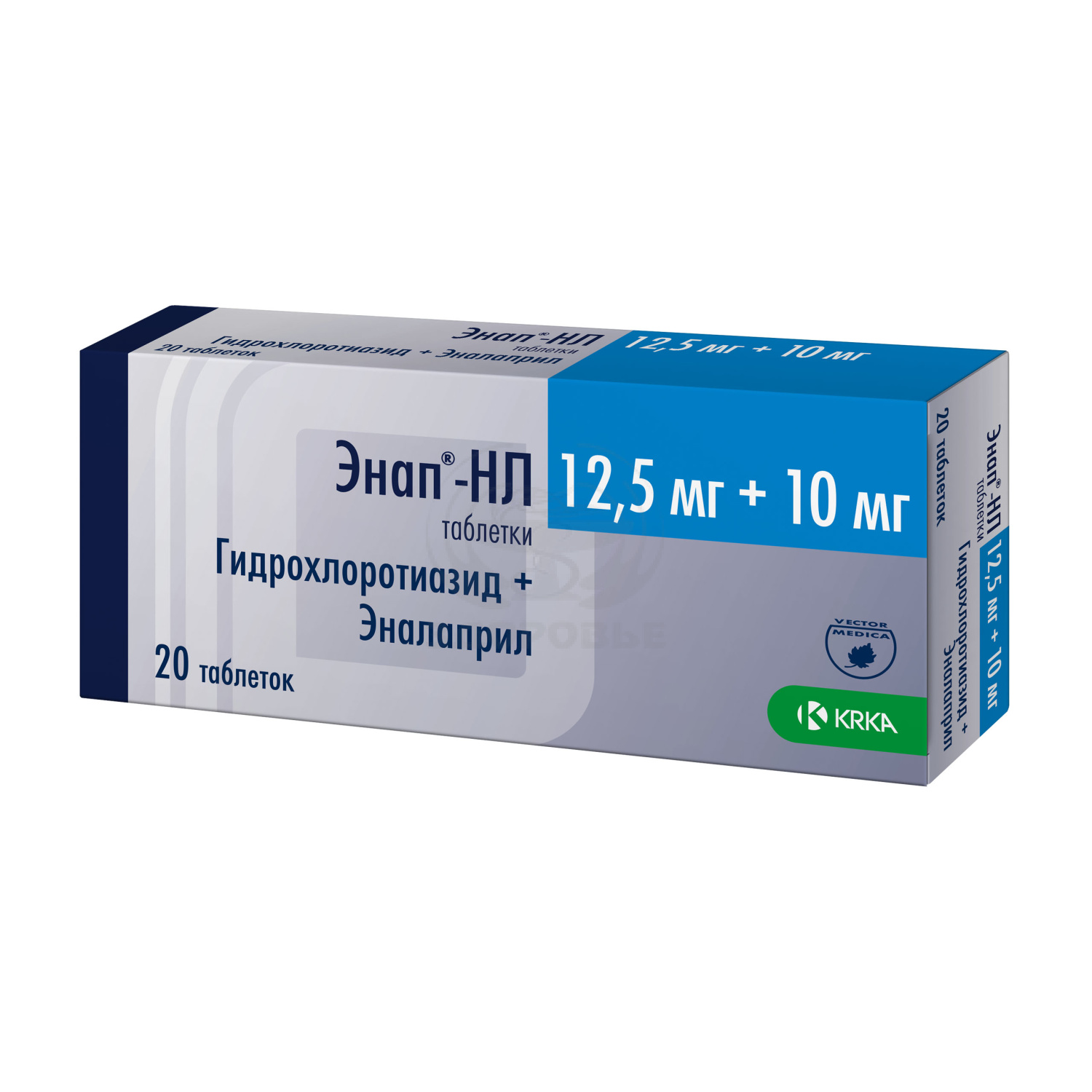 эналаприла малеат 10 мггидрохлоротиазид 12.5 мгВспомогательные вещества: натрия гидрокарбонат, лактозы моногидрат, кальция гидрофосфат безводный, крахмал кукурузный, тальк, магния стеарат.