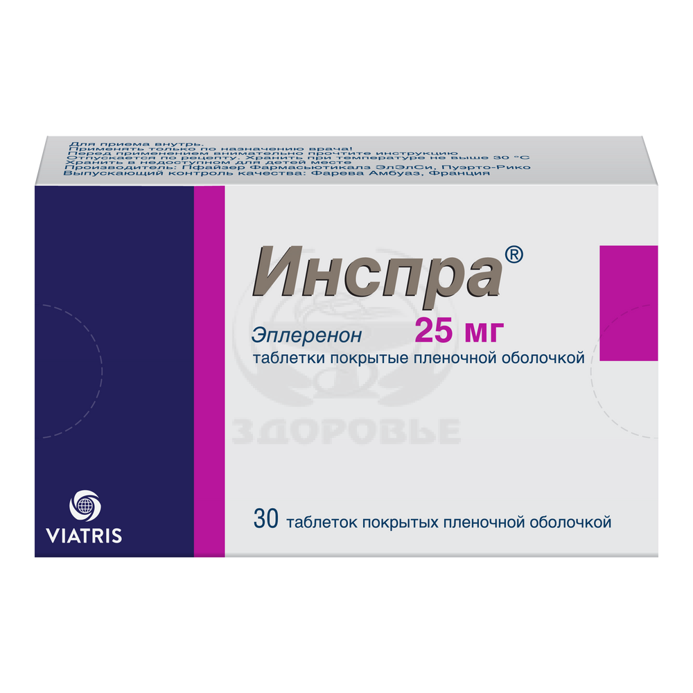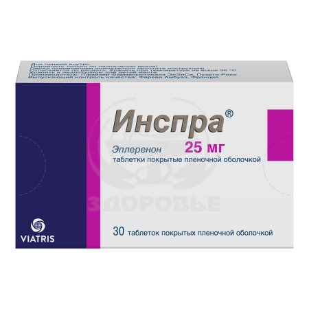 ГиперкалиемияПри лечении препаратом Инспра может развиться гиперкалиемия, которая обусловлена его механизмом действия. В начале лечения и при изменении дозы препарата у всех пациентов следует контролировать содержание калия в сыворотке крови. В дальнейшем периодический контроль содержания калия рекомендуется проводить пациентам с повышенным риском развития гиперкалиемии, например, пожилым, больным с почечной недостаточностью (см. раздел Способ применения и дозы) и сахарным диабетом. Учитывая повышенный риск развития гиперкалиемии, назначение препаратов калия после начала лечения эплереноном не рекомендуется. Снижение дозы препарата Инспра приводит к снижению содержания калия в сыворотке крови. В одном исследовании добавление гидрохлоротиазида к эплеренону препятствовало увеличению содержания калия в сыворотке крови.Нарушение функции почекУ пациентов с нарушениями функции почек, в т.ч. диабетической микроальбуминурией, рекомендуется регулярно контролировать содержание калия в сыворотке крови. Риск развития гиперкалиемии увеличивается при снижении функции почек. Хотя число больных сахарным диабетом 2 типа и микроальбуминурией в исследованиях было ограниченным, тем не менее, в этой небольшой выборке было отмечено увеличение частоты гиперкалиемии (см. раздел С осторожностью). В связи с этим у таких больных лечение следует проводить с осторожностью. Препарат Инспра не удаляется при гемодиализе. Применение препарата Инспра противопоказано при тяжелой почечной недостаточности (см. раздел Противопоказания).Нарушение функции печениУ больных с легкими или умеренными нарушениями функции печени (5-6 и 7-9 баллов по классификации Чайлда-Пью) увеличения содержания калия в сыворотке крови более 5.5 ммоль/л выявлено не было. У таких пациентов следует контролировать концентрацию электролитов. У больных с тяжелыми нарушениями функции печени эплеренон не изучался, поэтому его применение противопоказано (см. раздел Противопоказания).Индукторы изофермента CYP3А4Одновременное применение препарата Инспра с сильными индукторами изофермента CYP3А4 не рекомендуется (см. раздел Взаимодействие с другими лекарственными средствами).Циклоспорин, такролимус, препараты, содержащие литийВо время лечения препаратом Инспра следует избегать применения этих средств (см. раздел Взаимодействие с другими лекарственными средствами).ЛактозаТаблетки препарата Инспра содержат лактозу, поэтому их не следует назначать больным с редкими наследственными заболеваниями, такими как непереносимость лактозы, дефицит лактазы и синдром мальабсорбции глюкозы-галактозы.Влияние на способность к вождению автотранспорта и управлению механизмамиЭффекты препарата Инспра на способность управлять автотранспортом или пользоваться техникой не изучались. Однако, учитывая возможность препарата вызывать головокружения и обморочные состояния, следует соблюдать осторожность при управлении автотранспортом или использовании техники на фоне приема препарата Инспра.