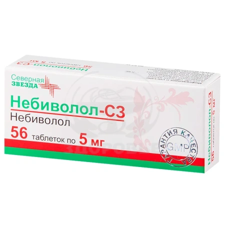 Кардиоселективный ?1-адреноблокатор. Небиволол оказывает гипотензивное антиангинальное и антиаритмическое действие. Снижает повышенное артериальное давление (АД) в покое при физическом напряжении и стрессе. Конкурентно и избирательно блокирует постсинаптические ?1-адренорецепторы делая их недоступными для катехоламинов моделирует высвобождение эндотелиального вазодилатирующего фактора оксида азота (NO).Небиволол представляет собой рацемат двух энантиомеров: SRRR-небиволола (D-небиволол) и RSSS-небиволола (L-небиволол) сочетающий два фармакологических действия:- D-небиволол является конкурентным и высокоселективным блокатором ?1-адренорецепторов,- L-небиволол оказывает мягкое сосудорасширяющее действие за счет модуляции высвобождения вазодилатирующего фактора (NO) из эндотелия сосудов.Гипотензивное действие обусловлено также уменьшением активности ренин-ангиотензин-альдостероновой системы (РААС) (прямо не коррелирует с изменением активности ренина в плазме крови).Устойчивое гипотензивное действие развивается через 1-2 недели регулярного приема препарата а в ряде случаев - через 4 недели стабильное действие отмечается через 1-2 месяца.Снижая потребность миокарда в кислороде (урежение частоты сердечных сокращений (ЧСС) снижение преднагрузки и постнагрузки) небиволол уменьшает число и тяжесть приступов стенокардии и повышает переносимость физической нагрузки. Антиаритмическое действие обусловлено подавлением патологического автоматизма сердца (в том числе в патологическом очаге) и замедлением атриовентрикулярной проводимости.