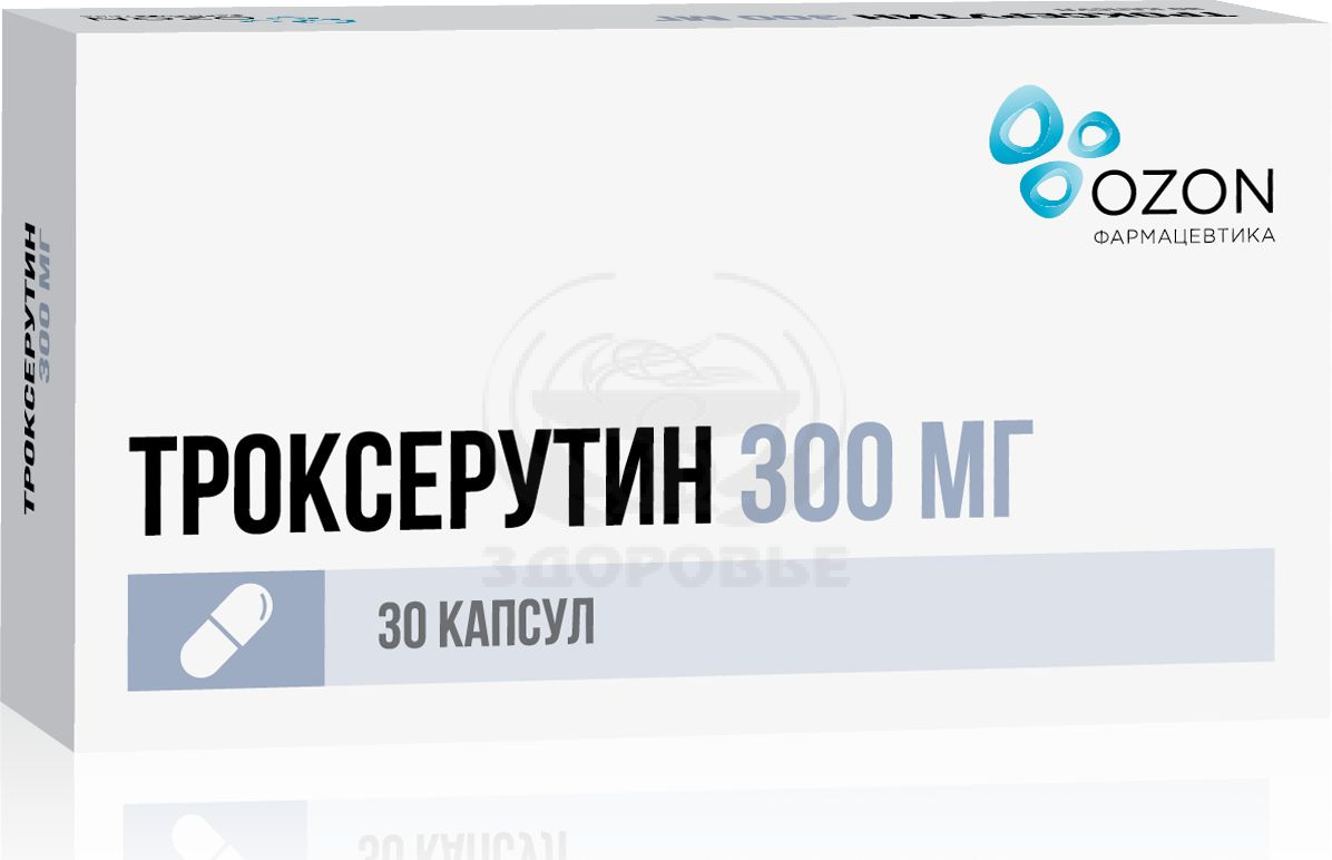 Состав на одну капсулу:Активное вещество: троксерутин - 300,0 мг.Вспомогательные вещества: лактозы моногидрат (сахар молочный) - 39,5 мг, карбоксиметилкрахмал натрия - 7,0 мг, магния стеарат - 3,5 мг.Капсулы твердые желатиновые № 0Состав корпуса капсулы: краситель железа оксид красный - 0,0071 %, краситель железа оксид желтый - 0,1227 %, титана диоксид - 2,0000 %, желатин - до 100 %.Состав крышечки капсулы: краситель бриллиантовый голубой - 0,0190 %, краситель красный очаровательный - 0,0450 %, титана диоксид - 3,0000 %, желатин - до 100 %.