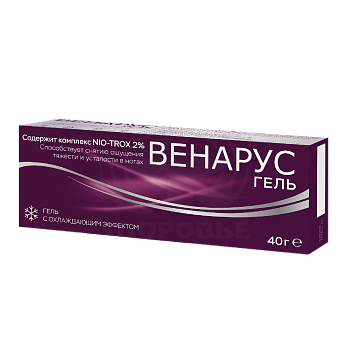 Благодаря уникальному комплексу активных компонентов, Венарус гель обладает следующими эффектами:- снимает чувство тяжести и усталости в ногах,- восстанавливает ощущение легкости и комфорта в ногах,- смягчает и защищает кожу ног.В состав средства входят:Активный комплекс NIO-TROX 2% (Троксерутин ниосомальный) - это инновационная трансдермальная система доставки троксерутина в форме ниосомальных везикул, способных проникать глубоко в кожу. В сочетании с другими активными компонентами (экстракт конского каштана, экстракт косточек красного винограда и драже), оказывает положительное действие на состояние и внешний вид ног.Комплекс NIO-TROX 2% способствует:- улучшению микроциркуляции,- уменьшению проницаемости капилляров,- уменьшению отечности в ногах,- уменьшению ощущения тяжести в ногах.Экстракт конского каштана (эсцин) - венотонизирующее средство растительного происхождения. Уменьшает проницаемость сосудистой стенки и ломкость капилляров. Обладает противовоспалительным и противоотечным свойствами. Улучшает микроциркуляцию и состояние кожи.Экстракт красного винограда - оказывает антиоксидантное и противоотечное действие, тем самым уменьшает нагрузку, способствующую развитию варикозного расширения вен.Масло виноградных косточек в сочетании с декспантенолом - оказывают противовоспалительное, успокаивающее, регенерирующее действие на кожу.
