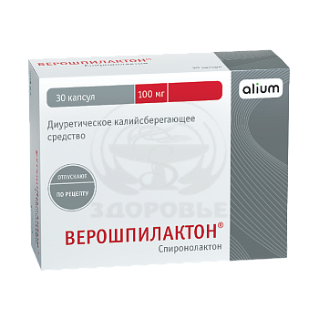 Хроническая сердечная недостаточность Лечение отеков при хронической сердечной недостаточности Начальная доза спиронолактона составляет 100 мг в сутки (в 1 или 2 приема). В тяжелых случаях при недостаточной эффективности доза препарата может быть постепенно увеличена до максимальной суточной дозы 200 мг. Поддерживающая доза спиронолактона подбирается индивидуально и составляет от 25 до 200 мг в сутки (в 1 или 2 приема). Препарат может применяться одновременно с диуретиком, действующим в проксимальном отделе почечного канальца. В этом случае дозу спиронолактона следует скорректировать. Лечение хронической сердечной недостаточности (класс III–IV по классификации НьюЙоркской кардиологической ассоциации [NYHA] и фракция выброса левого желудочка ? 35 %) в дополнение к стандартной терапии Для пациентов с содержанием калия в сыворотке крови ? 5,0 ммоль/л и концентрацией креатинина в сыворотке крови ? 220 мкмоль/л (? 2,5 мг/дл) на фоне стандартной терапии начальная доза спиронолактона составляет 25 мг один раз в сутки. Для пациентов с хорошей переносимостью препарата в дозе 25 мг в сутки при наличии клинических показаний доза спиронолактона может быть увеличена до 50 мг в сутки. Для пациентов с плохой переносимостью терапии спиронолактоном в дозе 25 мг/сутки или при развитии гиперкалиемии доза препарата может быть снижена до 25 мг 1 раз в 2 дня. Артериальная гипертензия Рекомендуемая начальная доза спиронолактона при одновременном применении с другими гипотензивными препаратами составляет 25 мг в сутки. Если спустя 2–4 недели артериальное давление не достигает целевых значений, доза препарата может быть увеличена в 2 раза. Поддерживающая доза спиронолактона составляет от 25 до 100 мг в сутки. Увеличение суточной дозы спиронолактона до более 100 мг не приводит к усилению антигипертензивного действия. У пациентов с артериальной гипертензией, получающих препараты, которые могут вызвать развитие гиперкалиемии (например, ингибиторы ангиотензинпревращающего фермента [АПФ] или антагонисты рецепторов ангиотензина II [APA II]), до начала применения спиронолактона следует оценить содержание калия и креатинина в сыворотке крови. Не следует назначать препарат Верошпилактон® пациентам, у которых содержание калия в сыворотке крови превышает 5,0 ммоль/л и (или) концентрация креатинина в сыворотке крови превышает 220 мкмоль/л (2,5 мг/дл). В течение первых 3 месяцев после начала приема спиронолактона требуется частый контроль содержания калия и креатинина в крови. Цирроз печени, сопровождающийся асцитом и/или отеками Если соотношение концентрации ионов натрия и калия (Na+ /K+ ) в моче превышает 1,0, рекомендуемая доза препарата составляет 100 мг в сутки. Если соотношение Na+ /K+ в моче меньше 1,0, рекомендуемая доза спиронолактона составляет от 200 до 400 мг в сутки. Поддерживающая доза должна определяться индивидуально для каждого пациента. Нефротический синдром, сопровождающийся отеками Рекомендуемая доза препарата составляет от 100 до 200 мг в сутки. Спиронолактон не обладает противовоспалительным действием и не оказывает влияния на основной патологический процесс. Применение препарата рекомендуется только в тех случаях, когда лечение основного заболевания, ограничение жидкости и натрия, а также применение других диуретиков недостаточно эффективны. Диагностика и лечение пер
