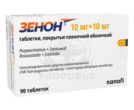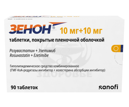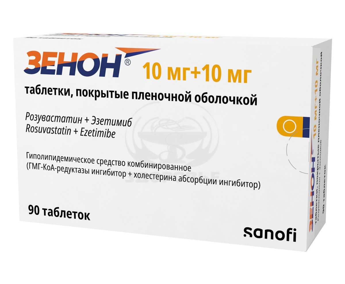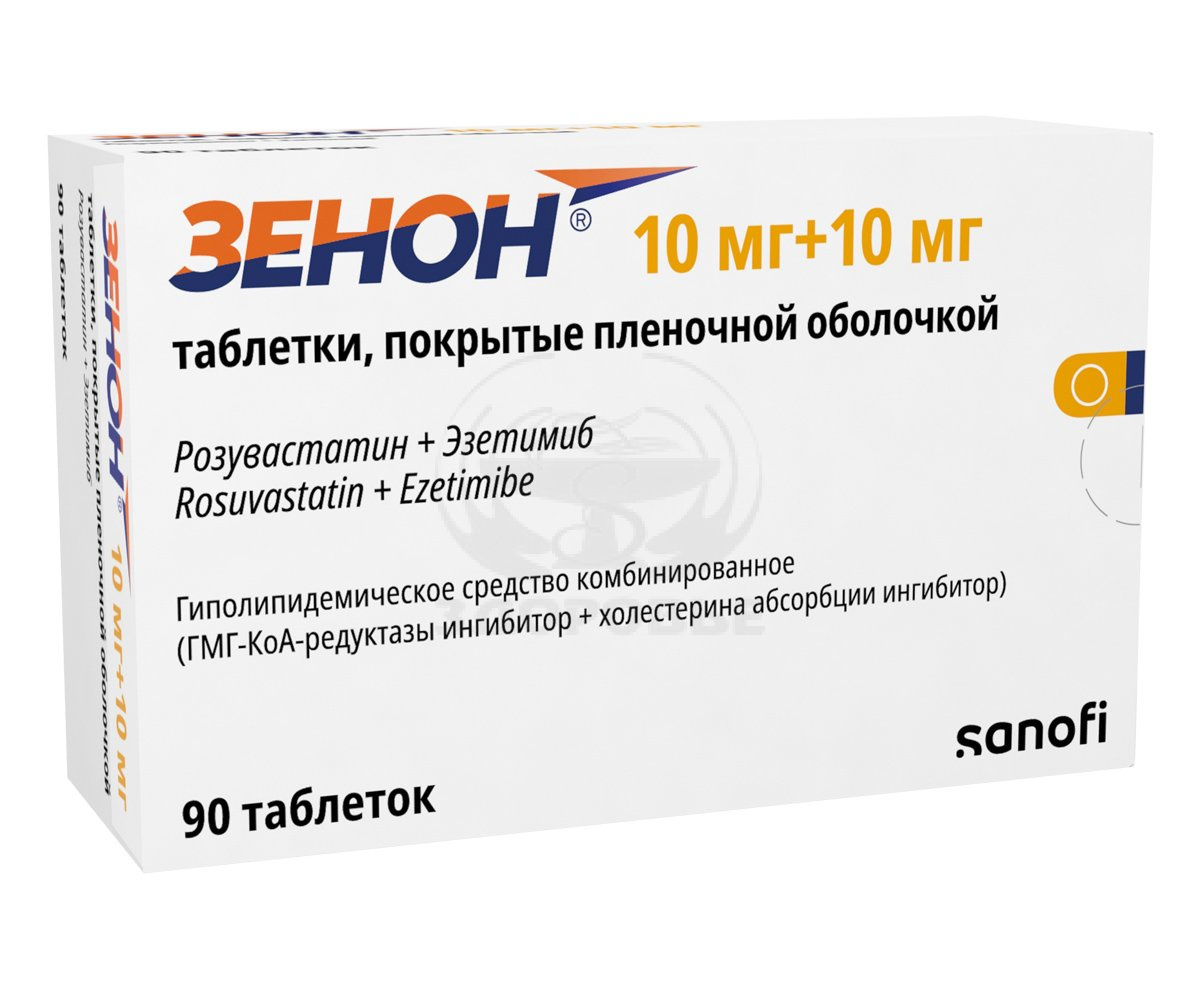 ХС поступает в плазму крови в результате всасывания в кишечнике и эндогенного синтеза. Препарат Зенон® содержит эзетимиб и розувастатин, два гиполипидемических компонента, дополняющих друг друга по механизму действия. Комбинация розувастатин + эзетимиб снижает повышенную концентрацию общего холестерина (ОХС) в плазме крови, холестерина липопротеинов низкой плотности (ХС-ЛПНП), аполипопротеина В (АпоВ), триглицеридов (ТГ) и холестерина липопротеинов невысокой плотности (ХС-не-ЛПВП, рассчитывается как разность между концентрацией ОХС и концентрацией ХС-ЛПНП) и повышает концентрацию в плазме крови холестерина липопротеинов высокой плотности (ХС-ЛПВП) путем двойного ингибирования, как абсорбции, так и синтеза ХС.