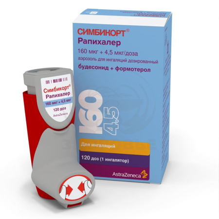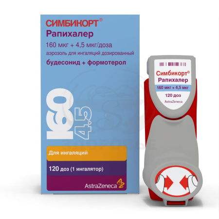 Симбикорт® Рапихалер 160 мкг + 4,5 мкг/доза: 2 ингаляции (2 высвобождения препарата) 1-2 раза в сутки. В случае усиления симптомов можно временно увеличить дозу (не более 1 недели) до 4 ингаляций (4 высвобождений препарата) 2 раза в сутки.