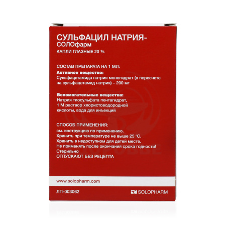 Пациенты с повышенной чувствительностью к фуросемиду, тиазидным диуретикам, сульфонилмочевине или ингибиторам карбоангидразы, могут иметь повышенную чувствительность к сульфацетамиду.