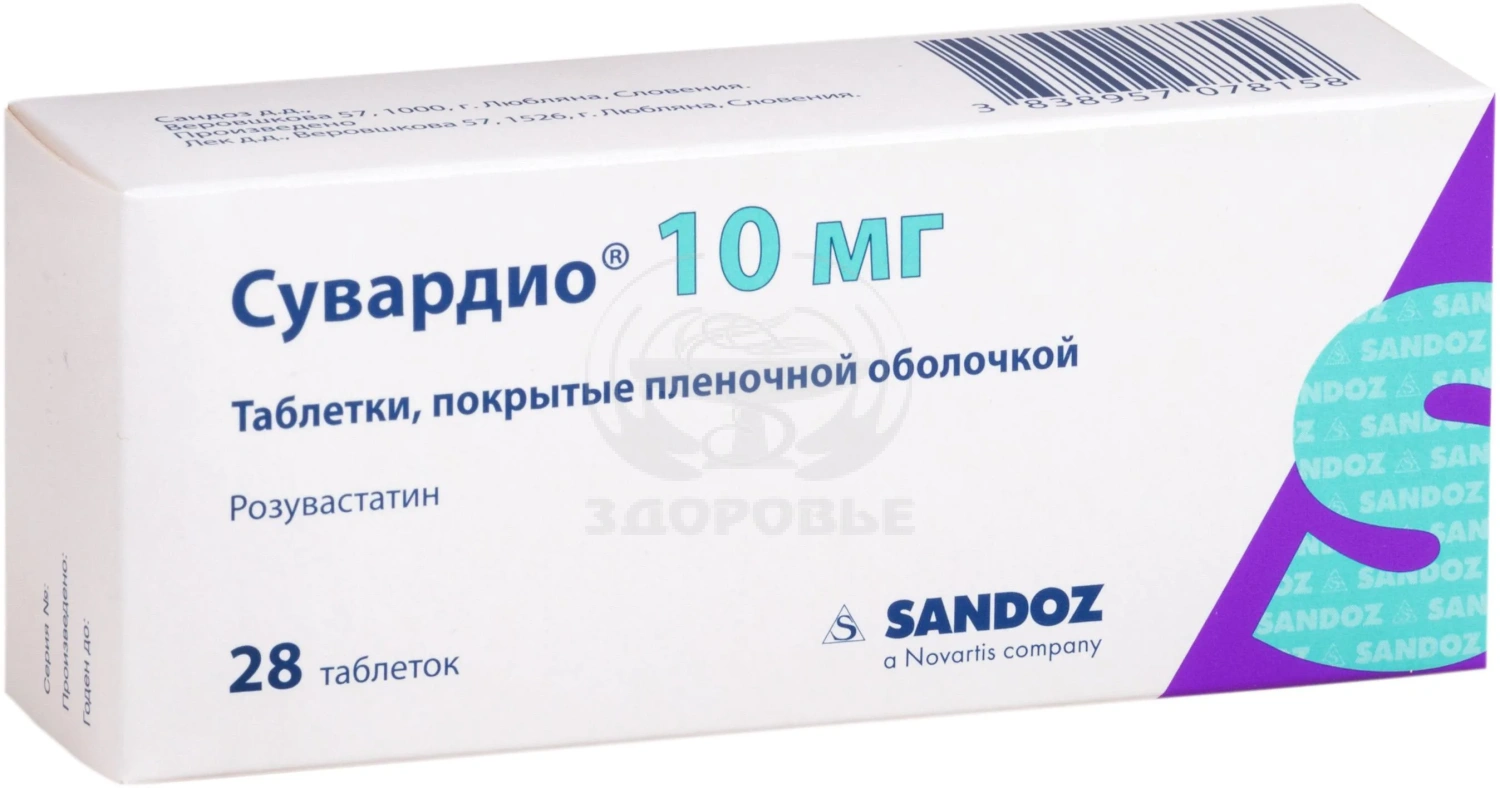 Препарат принимают внутрь, в любое время суток, независимо от приема пищи. Таблетку следует проглатывать целиком (не разжевывать, не измельчать), запивая водой. До начала терапии препаратом Сувардио пациент должен начать соблюдать стандартную гипохолестеринемическую диету и продолжать соблюдать ее в течение всего периода терапии. Дозу препарата Сувардио подбирают индивидуально с учетом целевых показателей концентрации холестерина и индивидуального терапевтического ответа на проводимую терапию. Рекомендуемая начальная доза препарата Сувардио составляет 5 мг или 10 мг 1 раз/сут как для пациентов, ранее не принимавших статины, так и для пациентов, переведенных на прием данного препарата после терапии другими ингибиторами ГМГ-КоА-редуктазы. При выборе начальной дозы следует руководствоваться концентрацией холестерина и возможным риском развития сердечно-сосудистых осложнений у данного пациента, а также следует оценить потенциальный риск развития побочных эффектов. При необходимости через 4 недели можно скорректировать дозу препарата. В связи с возможным развитием побочных эффектов при приеме дозы 40 мг по сравнению с более низкими дозами препарата, окончательное титрование до максимальной дозы 40 мг следует проводить только у пациентов с тяжелой формой гиперхолестеринемии и высоким риском возникновения сердечно-сосудистых осложнений (особенно у пациентов с наследственной гиперхолестеринемией), у которых при приеме дозы в 20 мг не была достигнута целевая концентрация холестерина, и которые будут находиться под врачебным наблюдением. При назначении дозы 40 мг рекомендовано тщательное наблюдение врача. Не рекомендуется назначение дозы 40 мг пациентам, ранее не обращавшимся к врачу. Для пациентов пожилого возраста (старше 65 лет) рекомендуемая начальная доза препарата Сувардио составляет 5 мг. В остальных случаях коррекция дозы в связи с возрастом не требуется. У пациентов с почечной недостаточностью легкой или умеренной степени коррекция дозы препарата Сувардио не требуется. Рекомендуемая начальная доза препарата составляет 5 мг для пациентов с почечной недостаточностью умеренной степени тяжести (КК менее 60 мл/мин). Пациентам с почечной недостаточностью умеренной степени противопоказано назначение препарата в дозе 40 мг. Применение препарата Сувардио в любых дозах противопоказано пациентам с тяжелой почечной недостаточностью (КК менее 30 мл/мин). Повышение системной концентрации розувастатина у пациентов с печеночной недостаточностью с баллом по шкале Чайлд-Пью, равным 7 и ниже, не выявлено. Однако повышение системной концентрации розувастатина наблюдалось у пациентов с печеночной недостаточностью с баллами по шкале Чайлд-Пью 8 и 9. У таких пациентов следует контролировать функцию печени на фоне терапии розувастатином. Данные о применении розувастатина у пациентов с печеночной недостаточностью с баллом по шкале Чайлд-Пью выше 9 отсутствуют. Пациентам с заболеваниями печени в активной фазе розувастатин противопоказан. Этнические группы У пациентов монголоидной расы возможно повышение системной концентрации розувастатина в плазме крови. Рекомендуемая начальная доза препарата Сувардио у пациентов монголоидной расы составляет 5 мг. Применение препарата в дозе 40 мг таким пациентам противопоказано. Пациент