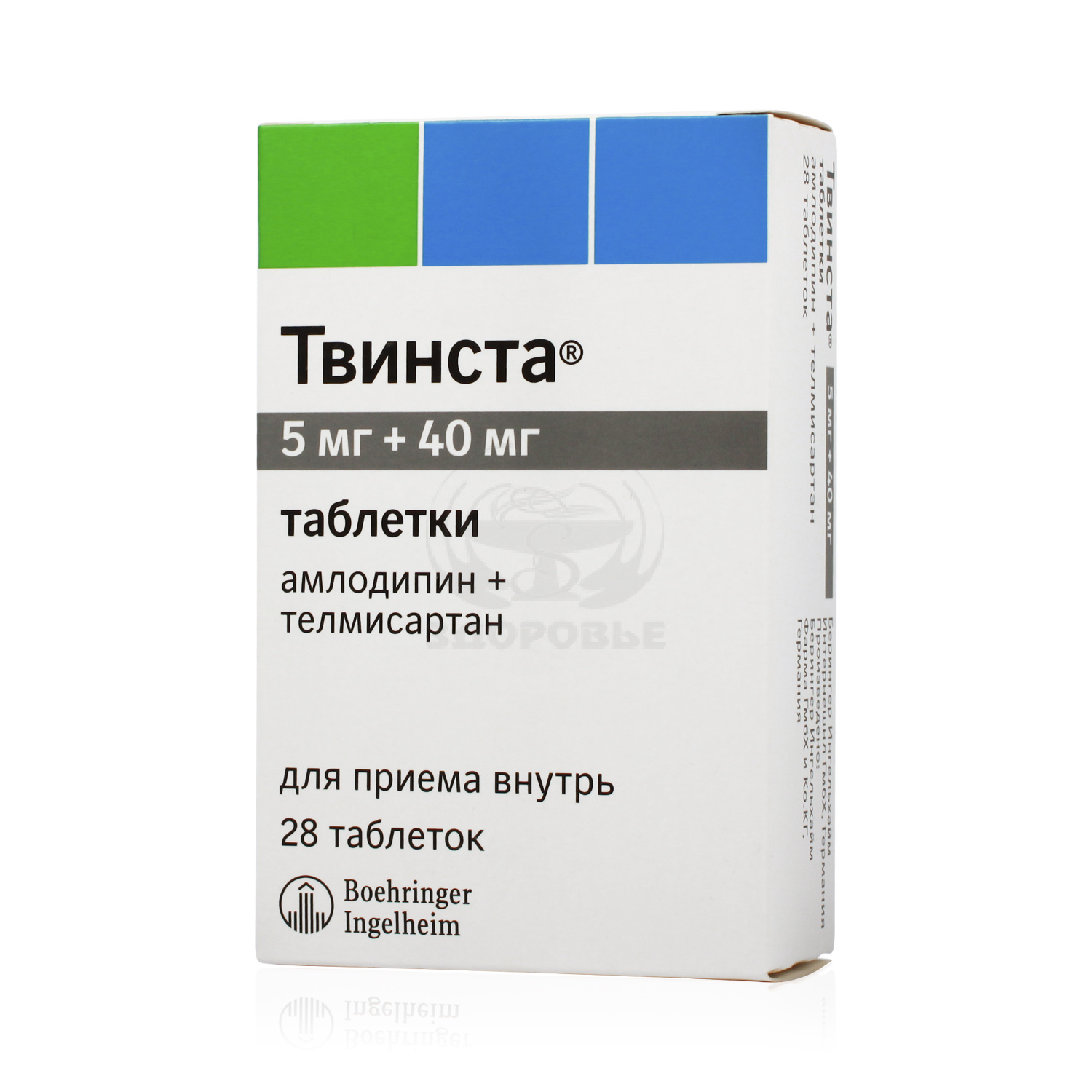 Комбинация этих веществ обладает аддитивным антигипертензивным действием, снижая АД в большей степени, чем каждый компонент по отдельности. Препарат Твинста, принимаемый 1 раз/сут, приводит к эффективному и устойчивому снижению АД в течение 24 ч.