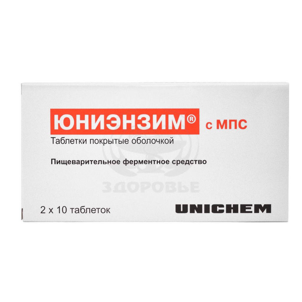 Таблетки, покрытые оболочкой Юниэнзим с МПС - пищеварительный ферментный препарат с компонентом, уменьшающим метеоризм.