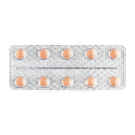 Круглые двояковыпуклые таблетки, покрытые пленочной оболочкой бледно-коричневого со слегка розоватым оттенком цвета. На поперечном разрезе ядро белого цвета.