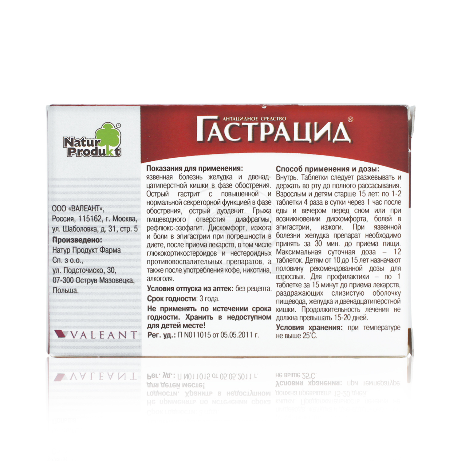 Внутрь. Таблетки следует разжевывать и держать во рту до полного рассасывания. Взрослым и детям старше 15 лет по 1-2 таблетки 4 раза в сут. через 1 ч после еды и вечером перед сном или при возникновении дискомфорта, болей в эпигастрии, изжоги. При язвенной болезни желудка препарат необходимо принять за 30 мин до приема пищи. Максимальная суточная доза - 12 таблеток. Детям от 10 до 15 лет назначают половину рекомендованной дозы для взрослых. Для профилактики - по 1 таблетке за 15 мин до приема лекарств, раздражающих слизистую оболочку пищевода, желудка и двенадцатиперстной кишки. Продолжительность лечения не должна превышать 15-20 дней.