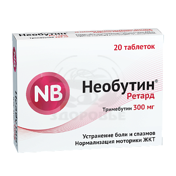 - Действующее вещество: тримебутина малеат 300 мг;
