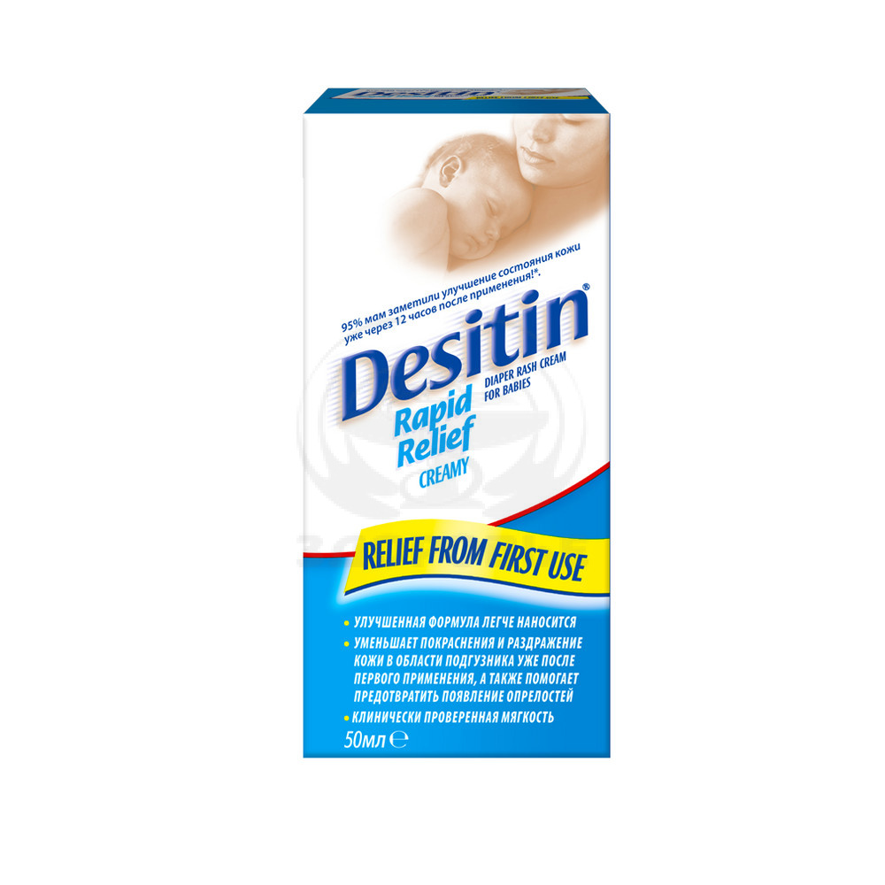 Комбинированный препарат с противовоспалительными свойствами для наружногоногоного применения. Предупреждает развитие пеленочного дерматита, защищает кожу от раздражающего действия мочи и других веществ, смягчает кожу. Свойства препарата обусловлены эффектами его компонентов. Цинка оксид, масло печени трески в сочетании с вазелино-ланолиновой основой мази создают физический барьер, образуя защитное покрытие на коже или слизистых оболочках, уменьшающее воздействие раздражающих веществ на пораженную область и предупреждает появление сыпи. Деситин дает заметный эффект при пеленочной сыпи в течение 24 ч после начала применения. Деситин обеспечивает продолжительный защитный эффект от влаги, особенно в ночное время, когда ребенок может находиться в мокрых пеленках. Оказывает также слабое вяжущее действие, поэтому его применяют в качестве противовоспалительного и защитного средства при небольших ожогах, порезах, царапинах, а также при экземе и поражениях кожи легкой степени.
